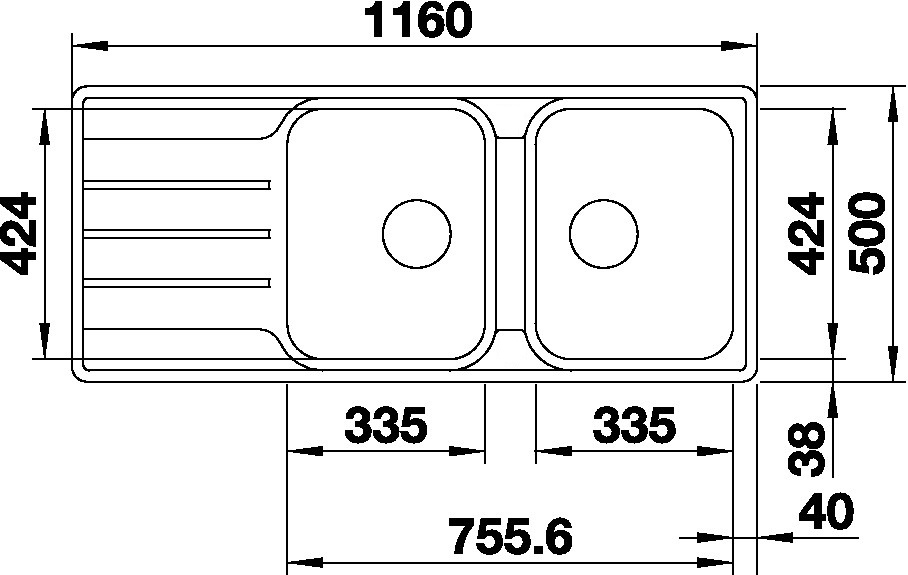 Blanco sink 523036 LEMIS 8S-IF brushed stainless steel without eccentric