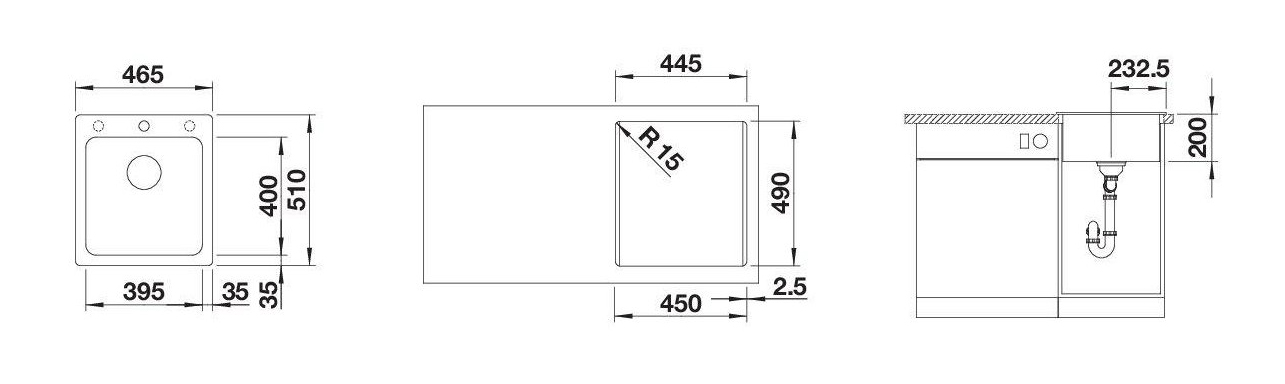 | Draining board | Without draining board |