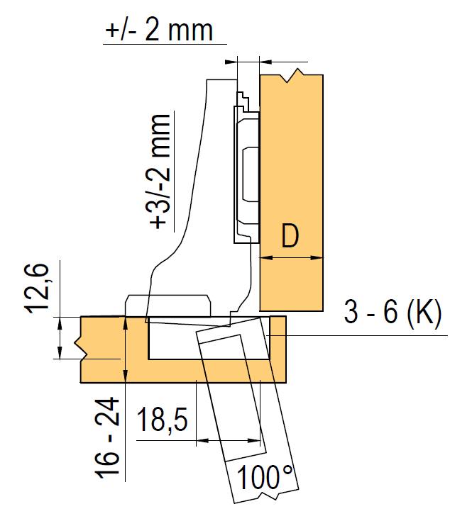 Hinge with pre-assembled dowels. Can be combined with the BLUMOTION stop damper to snap onto the hinge arm 973A0600 - 12385. Basic washers: others see. catalog Blum expando 174E6100.01 - 12302.