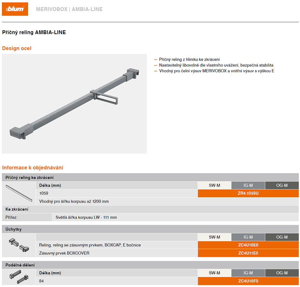 BLUM ZC4U10E0 držák příčného relingu pro reling/Boxcap MERIVOBOX tmavě šedá OG-M