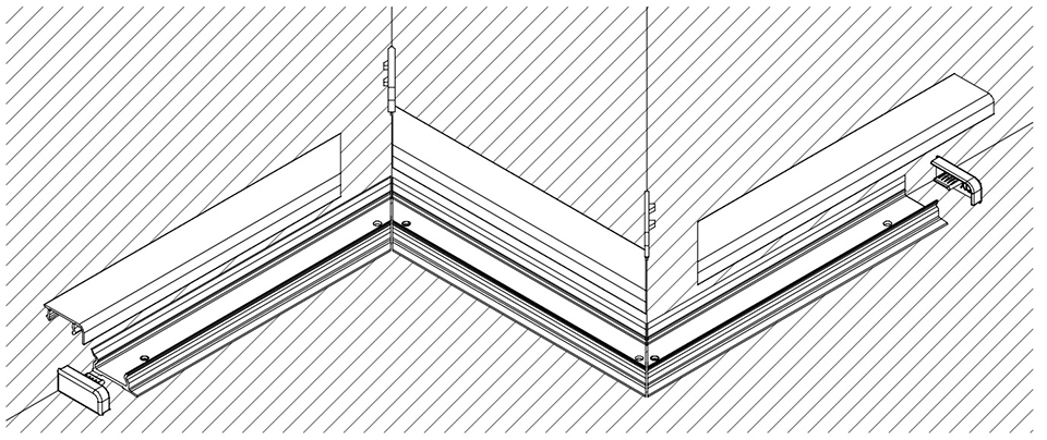 Set of end caps for the edge sealing strip barier TL6, contains left and right end cap, inner corner 45°, outer corner 45°.