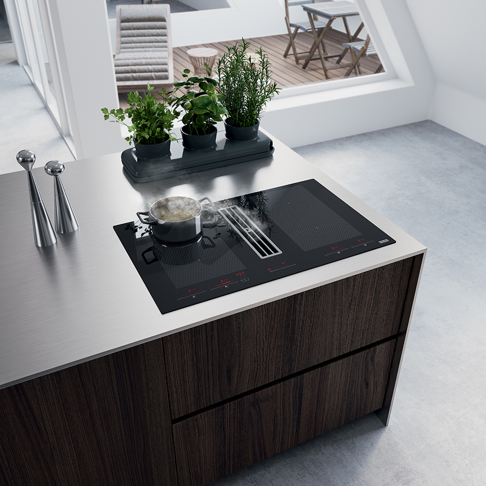 Franke induction hob with extractor hood FMA 8391 HI black glass/white graphic