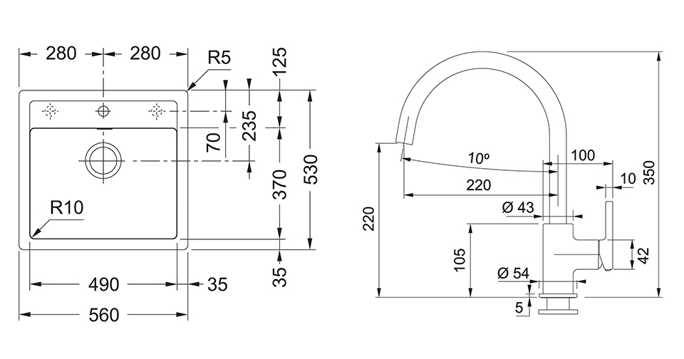 Franke Tectonite set T122Š (sink SID 610 gray + faucet FC 6018.084)