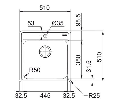 Franke Sink Bcx 610-51 510X510Mm Stainless Steel