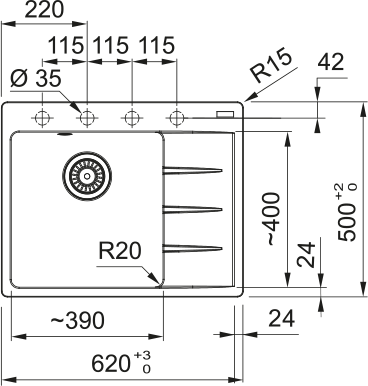 Franke Sink Cng 611-62 Tl/2 620X500Mm Grey Slate