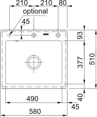 Cutout: 560 × 490 mm (Radius 10 mm)< br> Sink: 490 × 377 × 190 mm