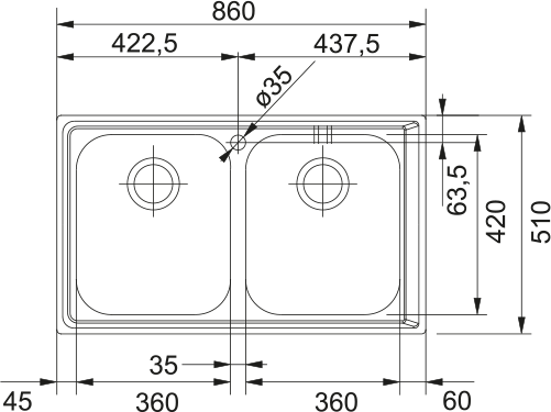 FRANKE Sink NEX 620 860 x 510mm stainless steel