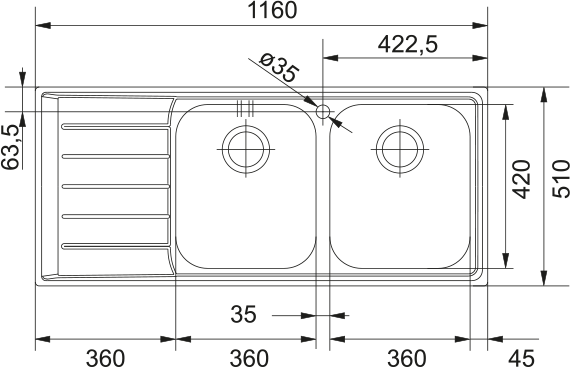 FRANKE Sink NEX 621/7L 1160 x 510mm stainless steel drain left