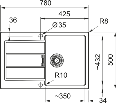 Sink: 350 × 432 × 200 mm