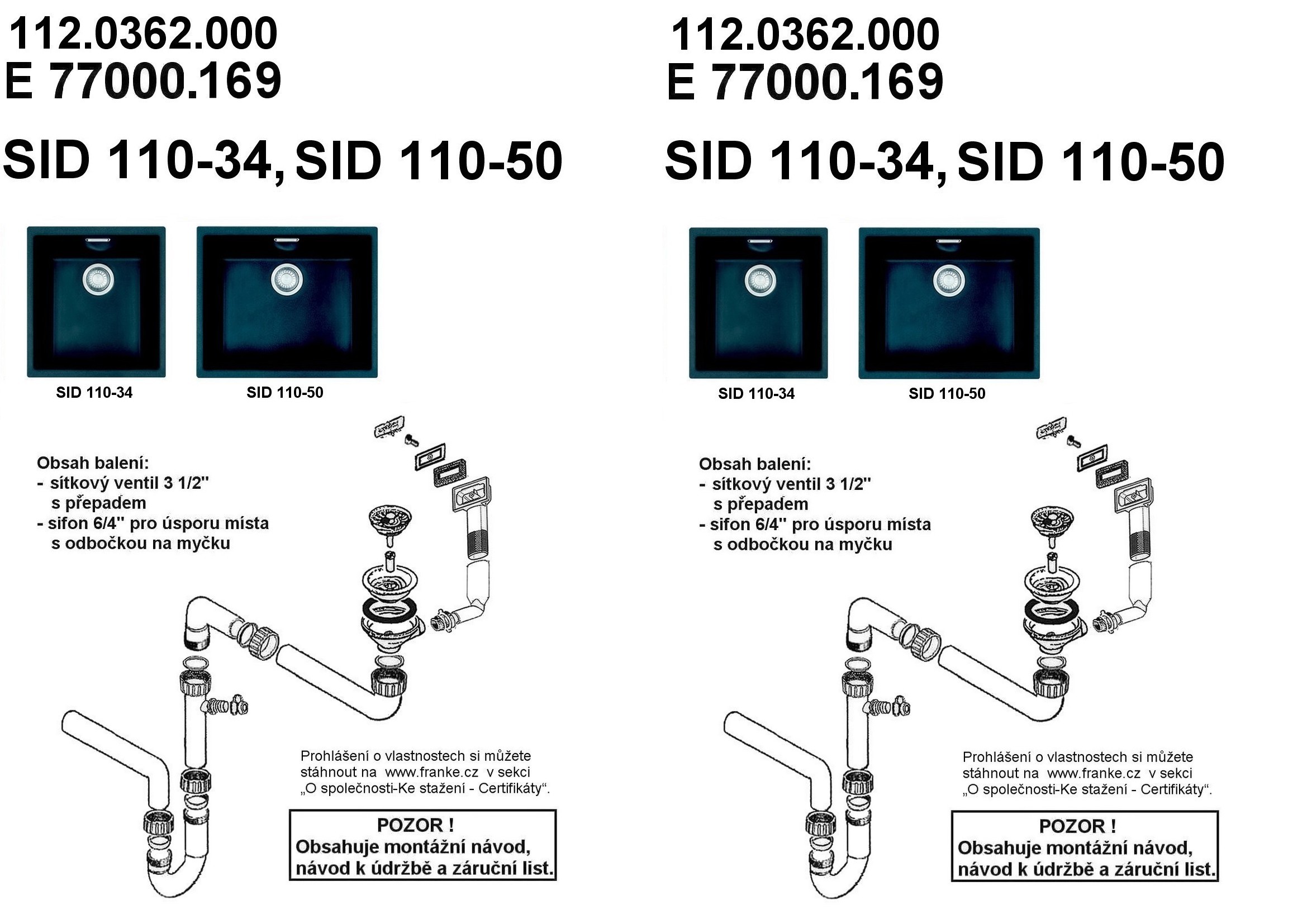 FRANKE sink Tectonite SID 110-34 for cabinet from 450 mm. dimensions: sink: 340 × 410 × 200 mm. strainer valve. 125.0363.785