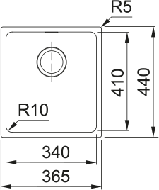 FRANKE sink Tectonite SID 110-34 for cabinet from 450 mm. dimensions: sink: 340 × 410 × 200 mm. strainer valve. 125.0363.784