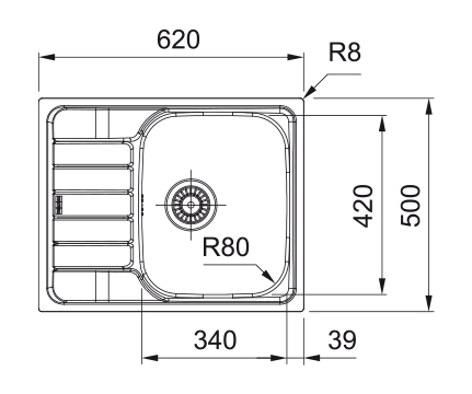FRANKE Dřez SKN 611-62/7 620 x 500 mm nerez odkap vlevo
