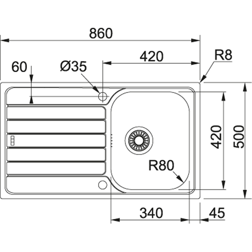 FRANKE Sink SKX 611-86/2P 860 x 500mm stainless steel drain right