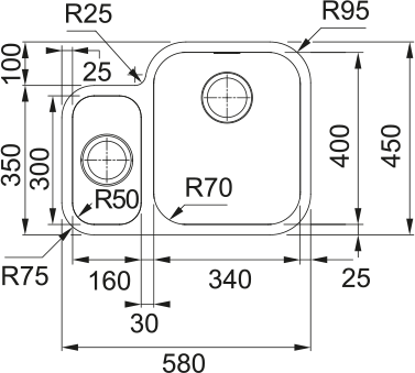 Franke Sink Srx 160/7 580X450Mm Stainless Steel