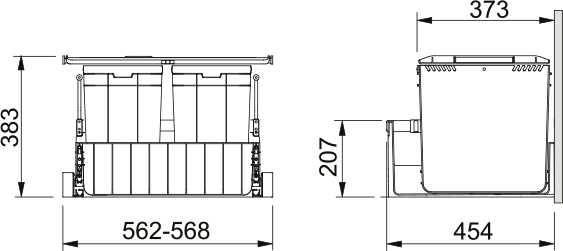 Min. installation space: 562 × 454 × 383 mm