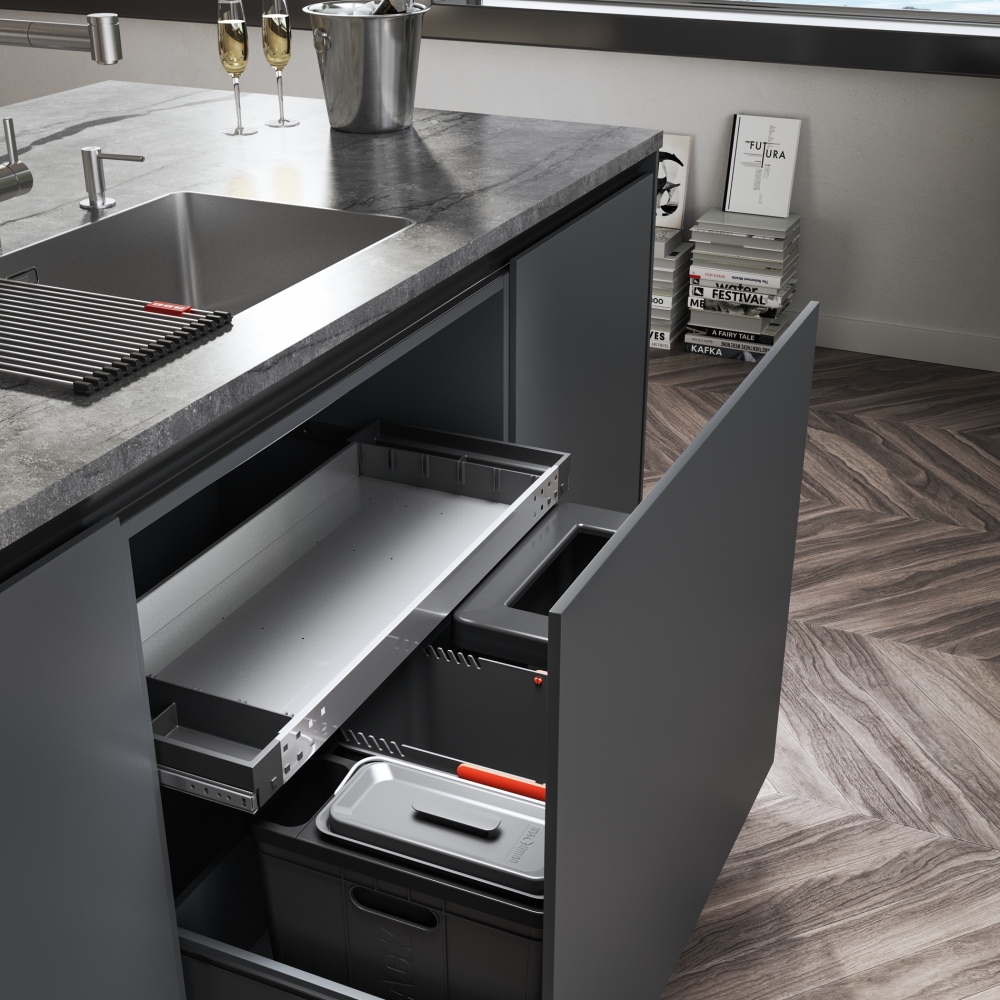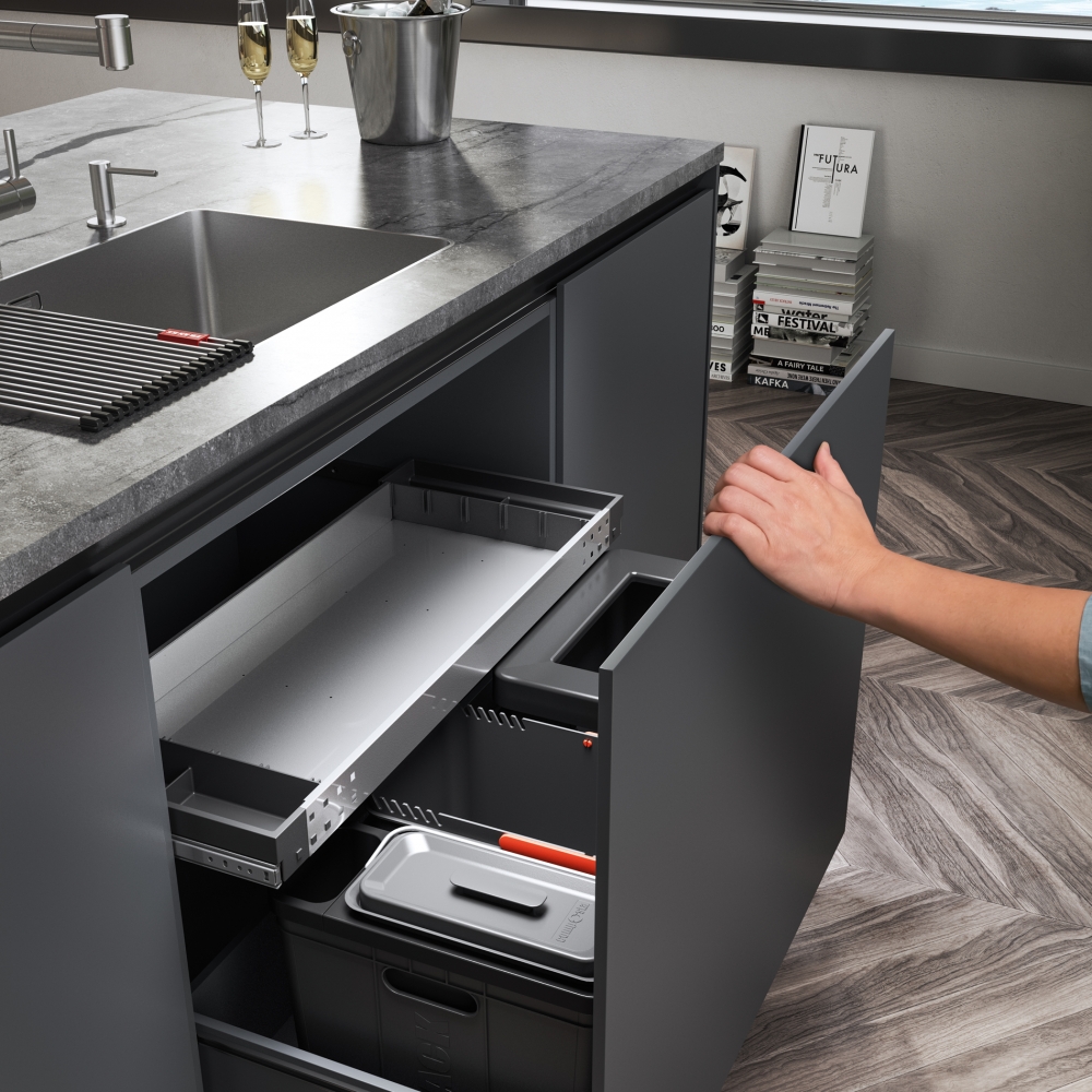 The pull-out drawer contains an active carbon filter that absorbs unpleasant odors.