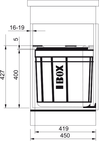 The clamping frame ensures a firm attachment of the bag (or 2 bags) and its/their easy replacement and maximum use of the basket volume.