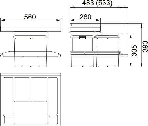 Min. installation space: 560 × 483 × 390 mm