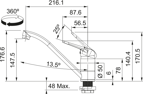 Franke faucet FC 6301 Pressureless Without shower Chrome