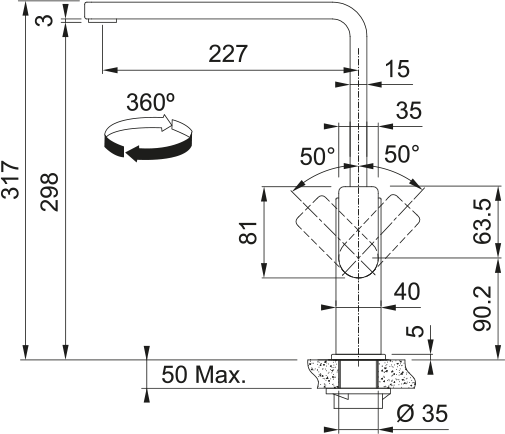 | Faucet shape | L |