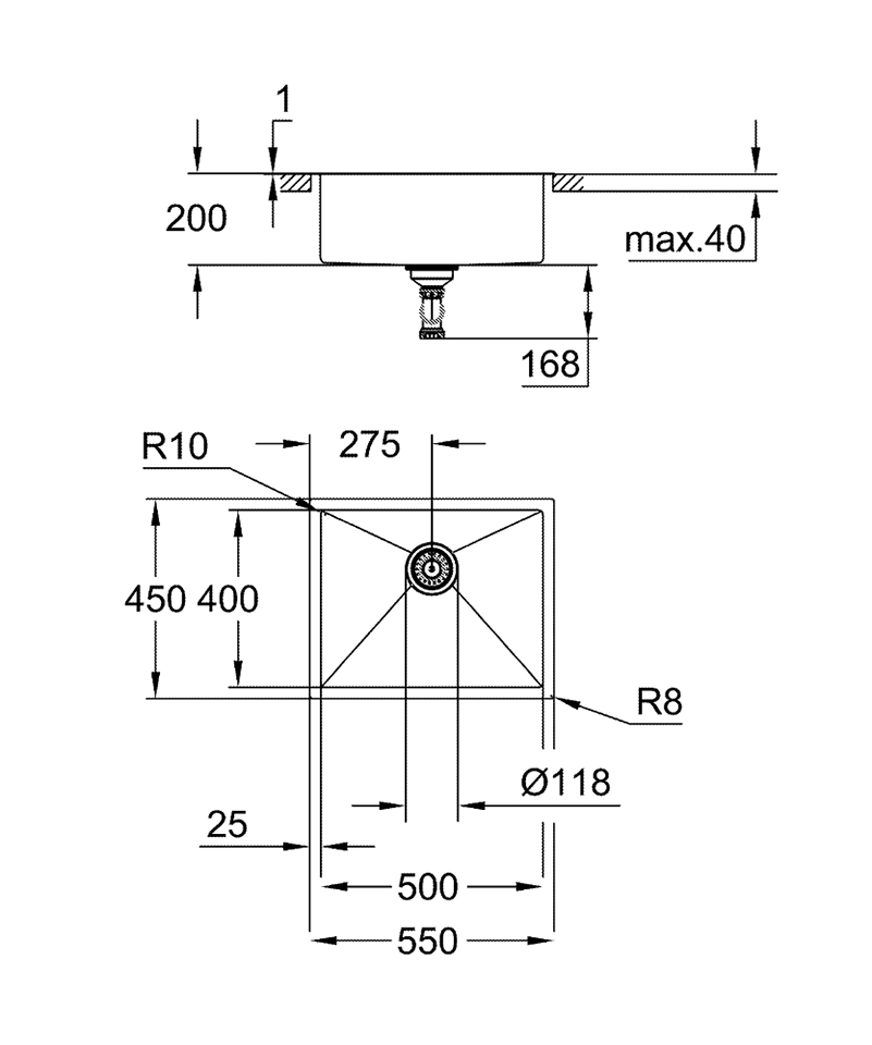 GROHE 31726SD0 Sink K700 60-S 550 x 450mm stainless steel, brushed