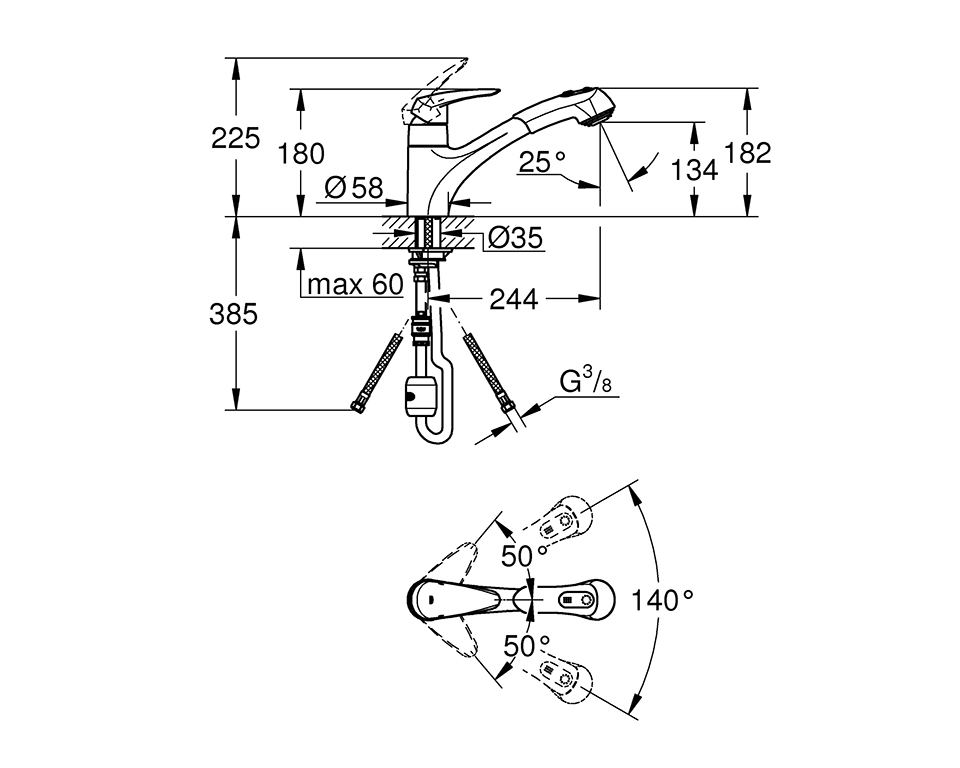 The moment you have a pile of greasy pots and pans lying in front of you that need to be washed after cooking a delicious meal, the pull-out shower head of this kitchen faucet comes into play, with the help of which you can handle this unpleasant challenge with ease. Washing dishes and cleaning the sink will be a breeze with this lever faucet. Thanks to the integrated GROHE SilkMove technology, handling the lever is smooth and easy. The 140° swivel range gives you added flexibility for everyday kitchen work. As part of ease of use in all respects, the battery also includes a special easy installation system for quick and trouble-free installation, as well as the SpeedClean anti-limescale system. The brilliant GROHE StarLight chrome finish ensures that this reliable Eurodisc faucet will always be an attractive part of your kitchen.