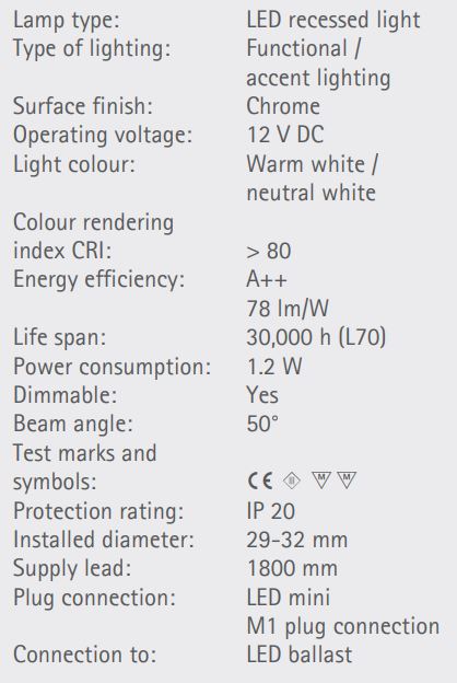 HAL LED Spot light Star Point 12V 1,2W chrome warm white