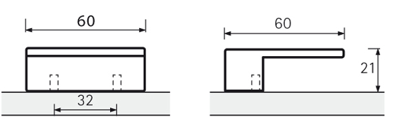 Knob VENUSIA, length 60 mm, drilling pitch 32 mm. Finish: stainless steel imitation.