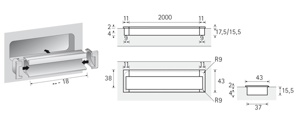 HETTICH 115298 SPIRA handle, end set, anodized aluminum