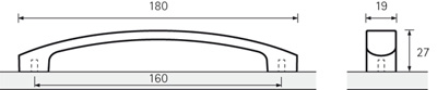 Handle SALONA, length 180 mm, drilling pitch 160 mm. Finish: steel imitation