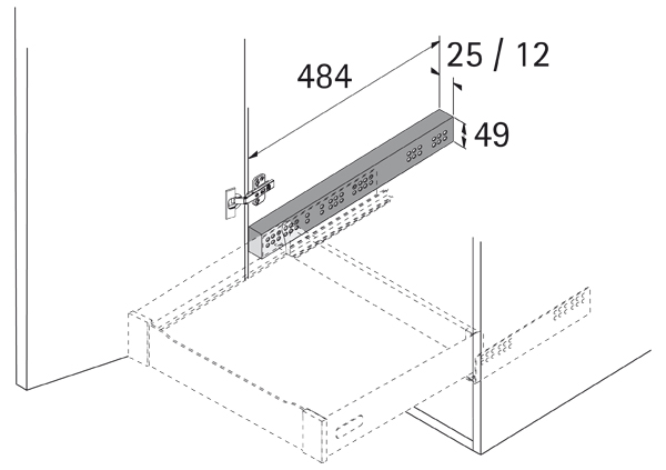 For Quadro and bell slides. Use on drawers located behind doors. The distance bar overcomes the overhang of the door into the clearness of the body. White plastic.
