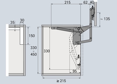 HETTICH 45032 hinged fittings, load capacity 5 kg, aluminum
