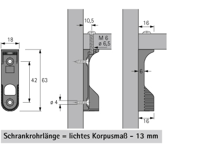 To be screwed under the shelf, with a special M6 x 25 screw, plus 2 screw holes for screwing to the side of the body.