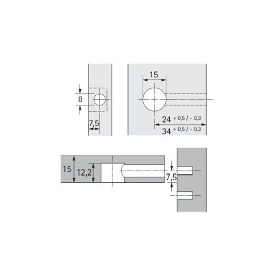 Eccentric connecting fitting Rastex 15. For part thickness 15 mm. Without crew. Zinc casting.