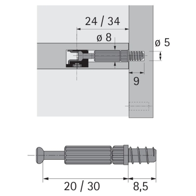 Hettich 9047978 Twister Du 320 Dowel, Screw-In, 30 Mm, Galvanized, Black