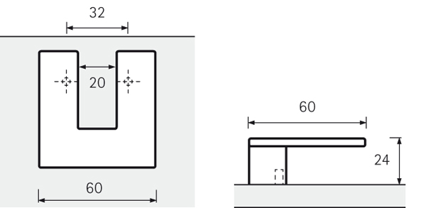 VIGILIA handle length 60 mm, drilling spacing 32 mm. Chrome finish.