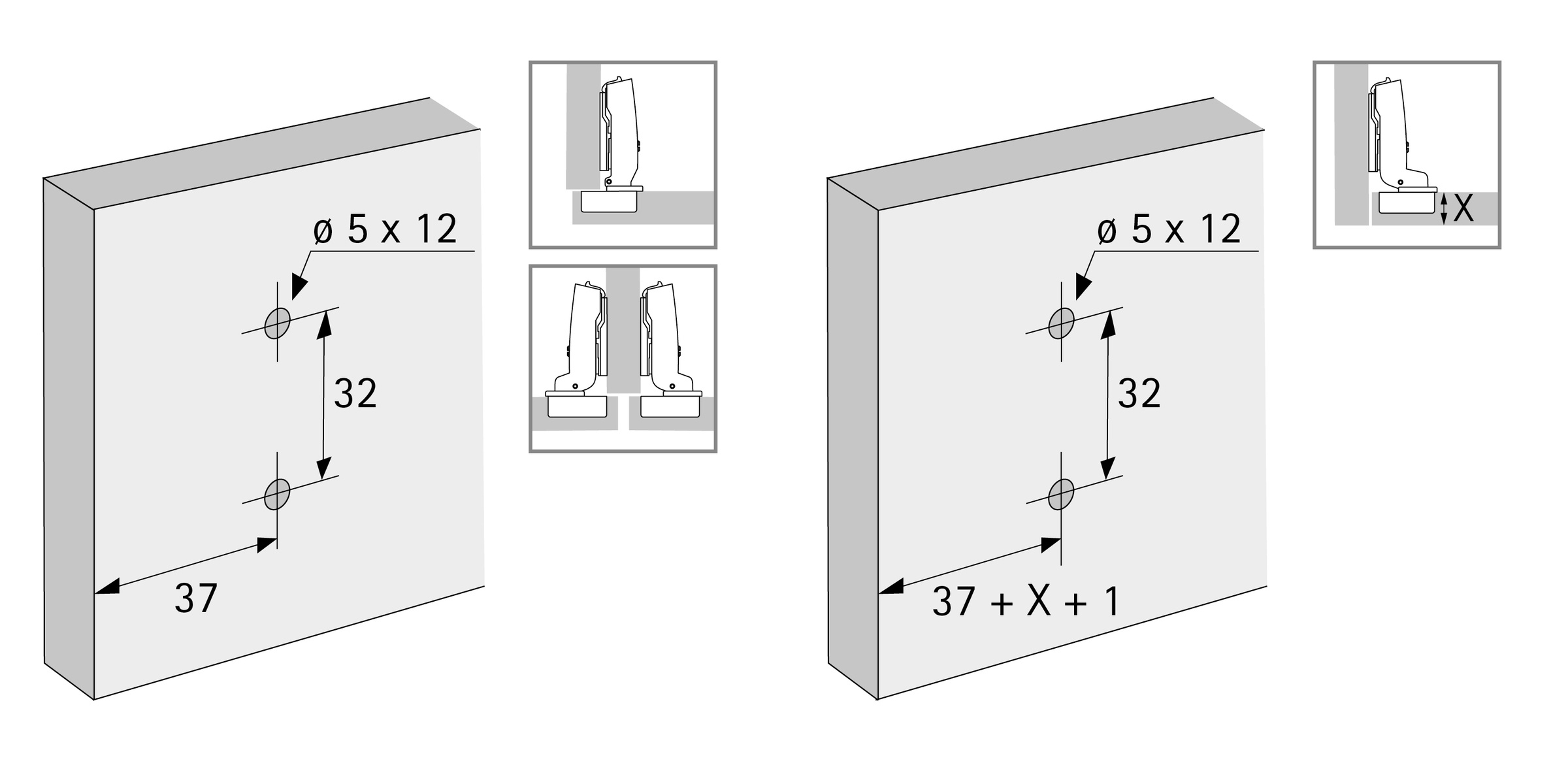 Mounting pad for Sensys and Intermat clip hinge to screw on with pre-assembled Euroscrews for drilling d=5x12mm. Oval holes for height adjustment +-2mm. Color black obsidian.