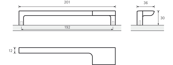 HETTICH 9105743 Handle Zenga 201/192 mm steel imitation left