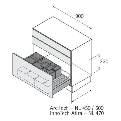 HETTICH 9132350 Ans. basket Bin.it Flex 900 mm 12+