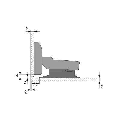 Sensys hinge with integrated damping and 110° opening angle, must be used with adapter for sticking to glass.