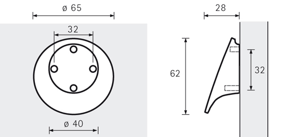 HETTICH 9190445 Knob AMISIA 65/32 mm steel imitation