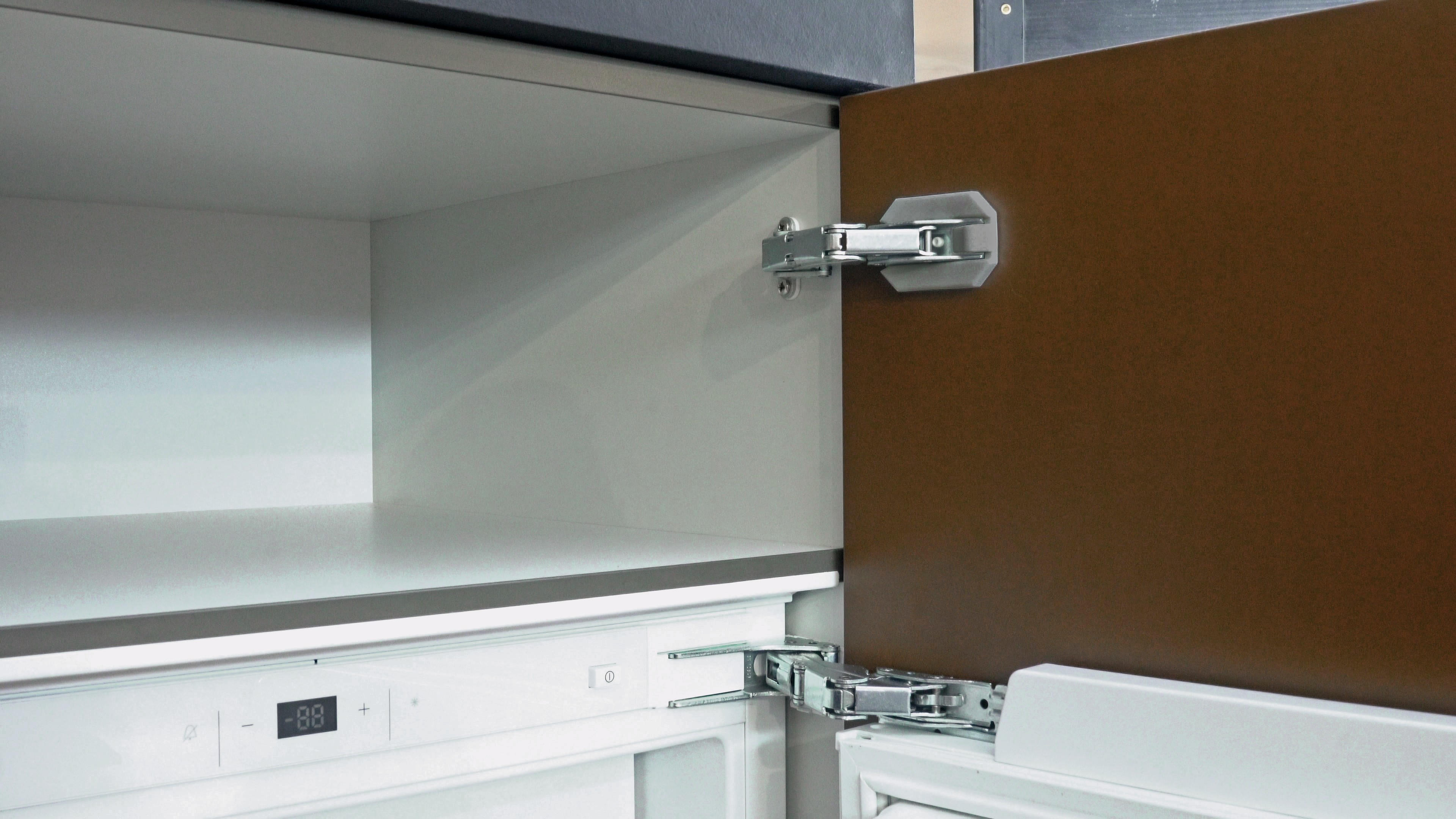 ET 582 hinges (104454) for built-in refrigerators with pivot hinges and a guiding slider cannot be combined with additional hinges for built-in refrigerators with OEM Hettich hinges: guiding Kamat hinge (387533) / load-bearing Evisys hinge (538127/538128).