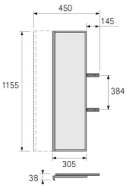 For mounting on the side of the body. Can be added to the existing corpus. Can be used as left or right. The magnetic strip prevents accidental tipping. Extension depth 456mm. Height 1155mm. Frame and handle bar: aluminum. Surface finish: anthracite.