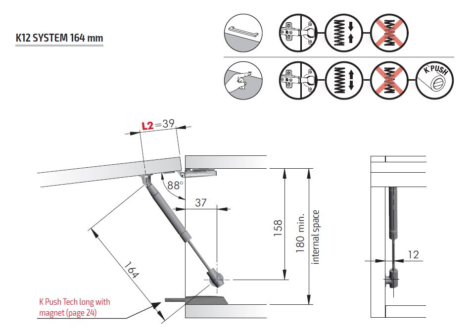 For handle-free opening, we recommend using K-push piston sets.