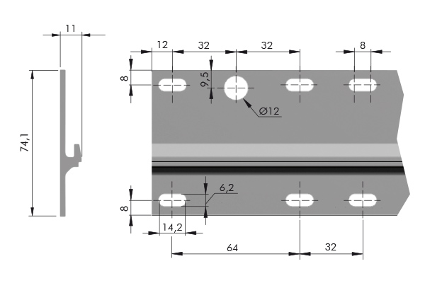 Aluminium wall bar for all types of LIBRA fittings, recommended especially for mounting bottom cabinets with H11 fittings. Allows the use of the LIBRA locking system of hanging hardware. Can be cut as required.