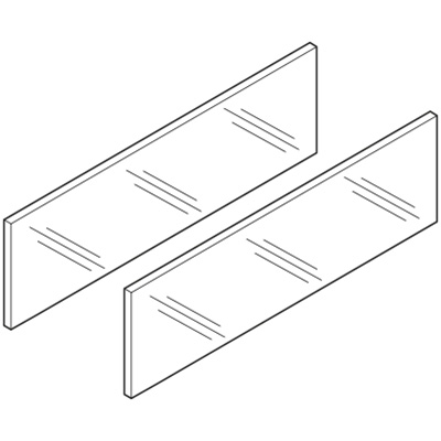 For the internal drawer sets, the front face cross elements are not included, they must be ordered separately and cut according to the clear internal width of the cabinet. These are the front panel (cut LW-126mm) without groove (for drawers with front reling) or with groove (for drawers with front glass) and, if necessary, the gripping element: front reling (cut LW-90mm), low front glass (10 x 70 x LW-80) or high front glass (10 x 138 x LW-80).