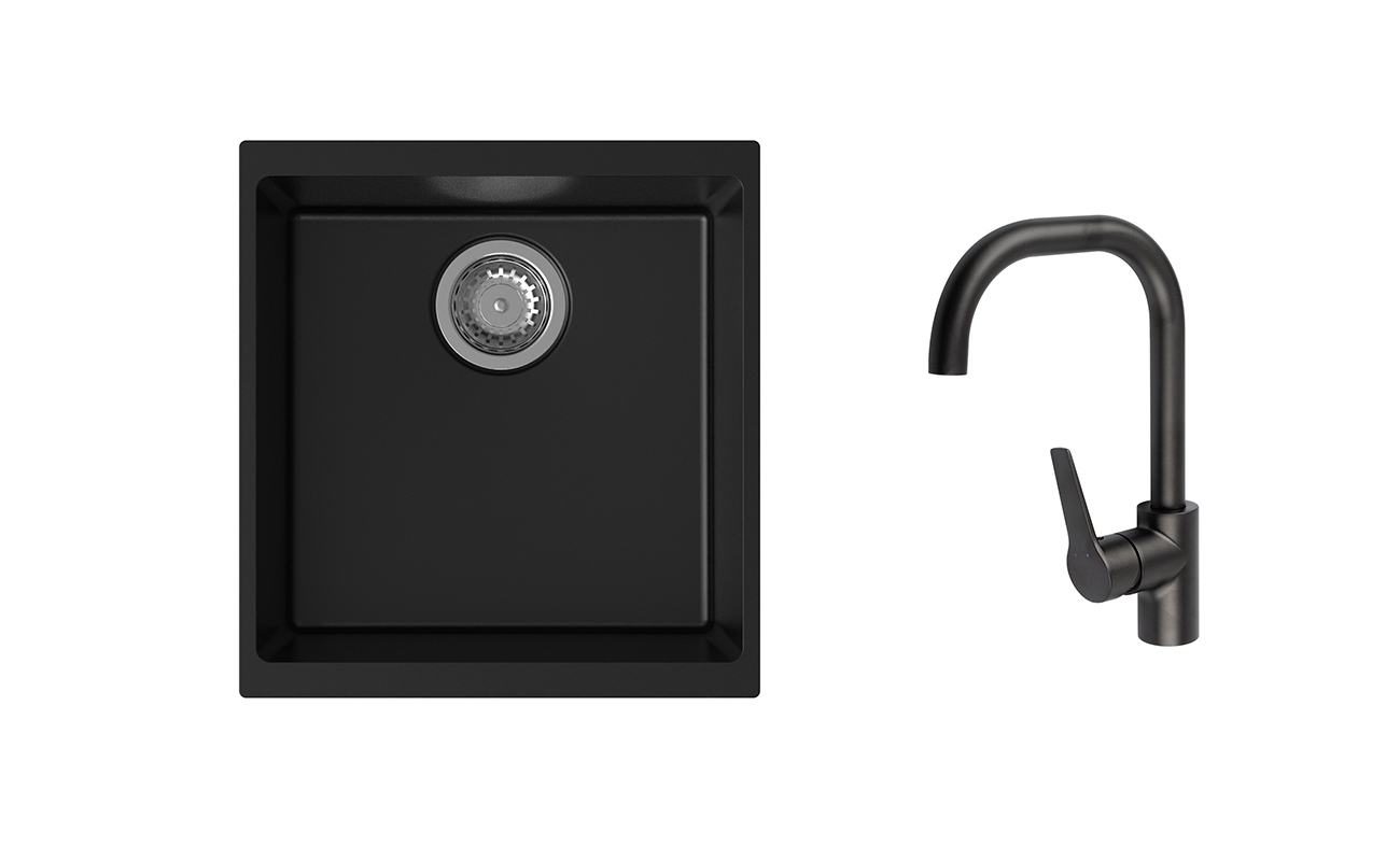 K-StrongSinks S3 Set dřez Hron 430x460mm granit černá + Baterie Garonne černá