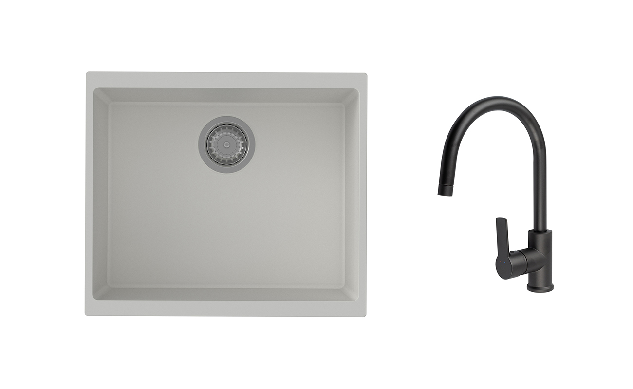 K-StrongSinks S3 Set dřez Hron 530x460mm granit bílá + Baterie Loira černá