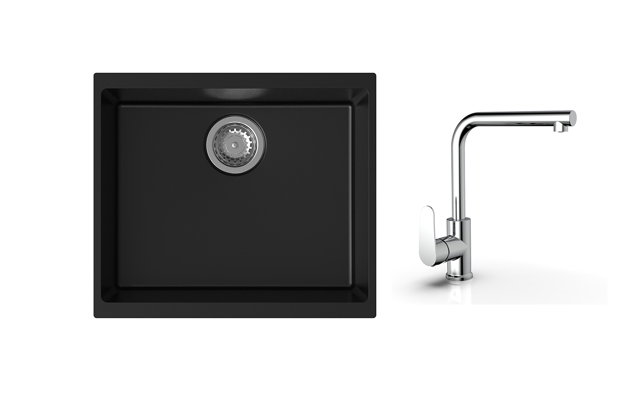 K-StrongSinks S3 Set dřez Hron 530x460mm granit černá + Baterie Stréva chrom