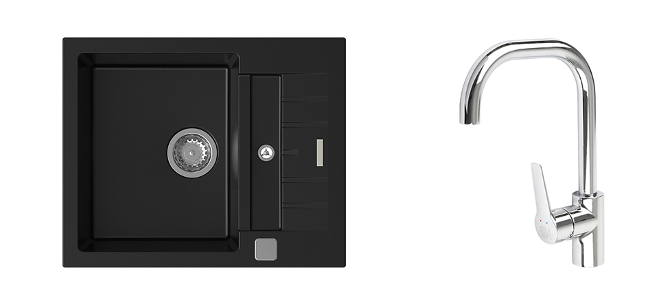 K-StrongSinks S3 Set sink Vardar 615x500mm granite black + Bater. Garonne chrome